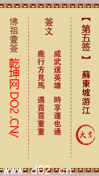 第五签:苏东坡游江〈顺水行舟〉大吉之卦,心动意和之兆〈龙〉